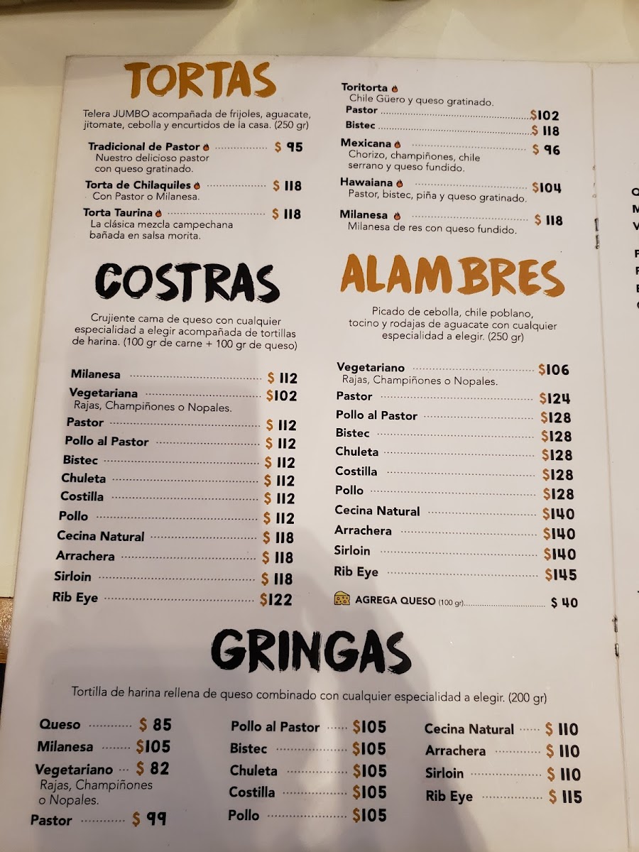 Consome de pollo, medio alambre a elegir proteina (pastor, bistec, costilla o arrachera), flan y bebida a elegir.